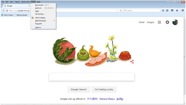 the web browser (Mozilla Firefox) by going to Tools > Options.